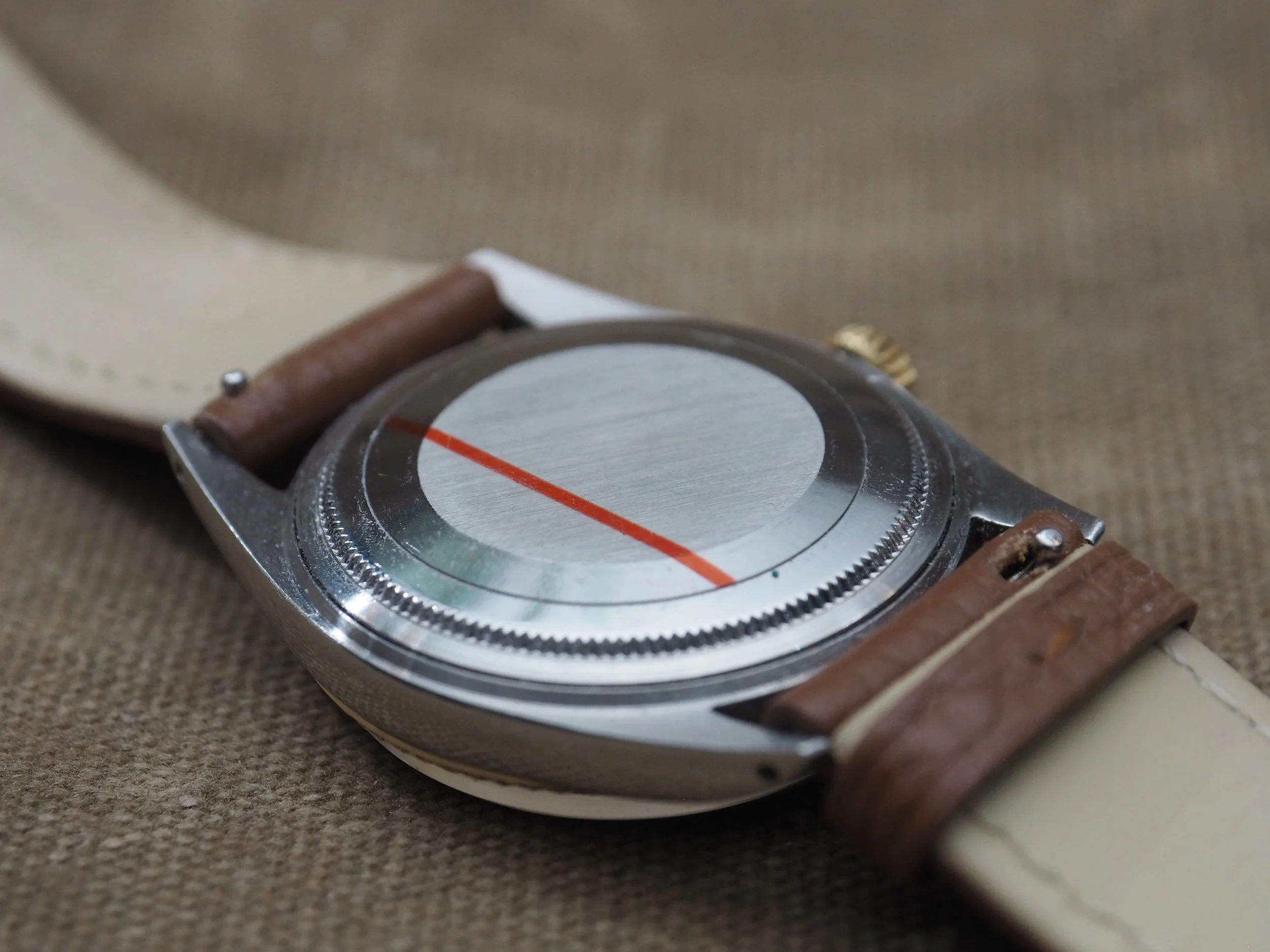 The case is in near mint condition with incredible sharp edges still present. It hasn’t been over polished and retains good definition to the lugs and fluted bezel. The caseback sticker from the last service remains on the rear.