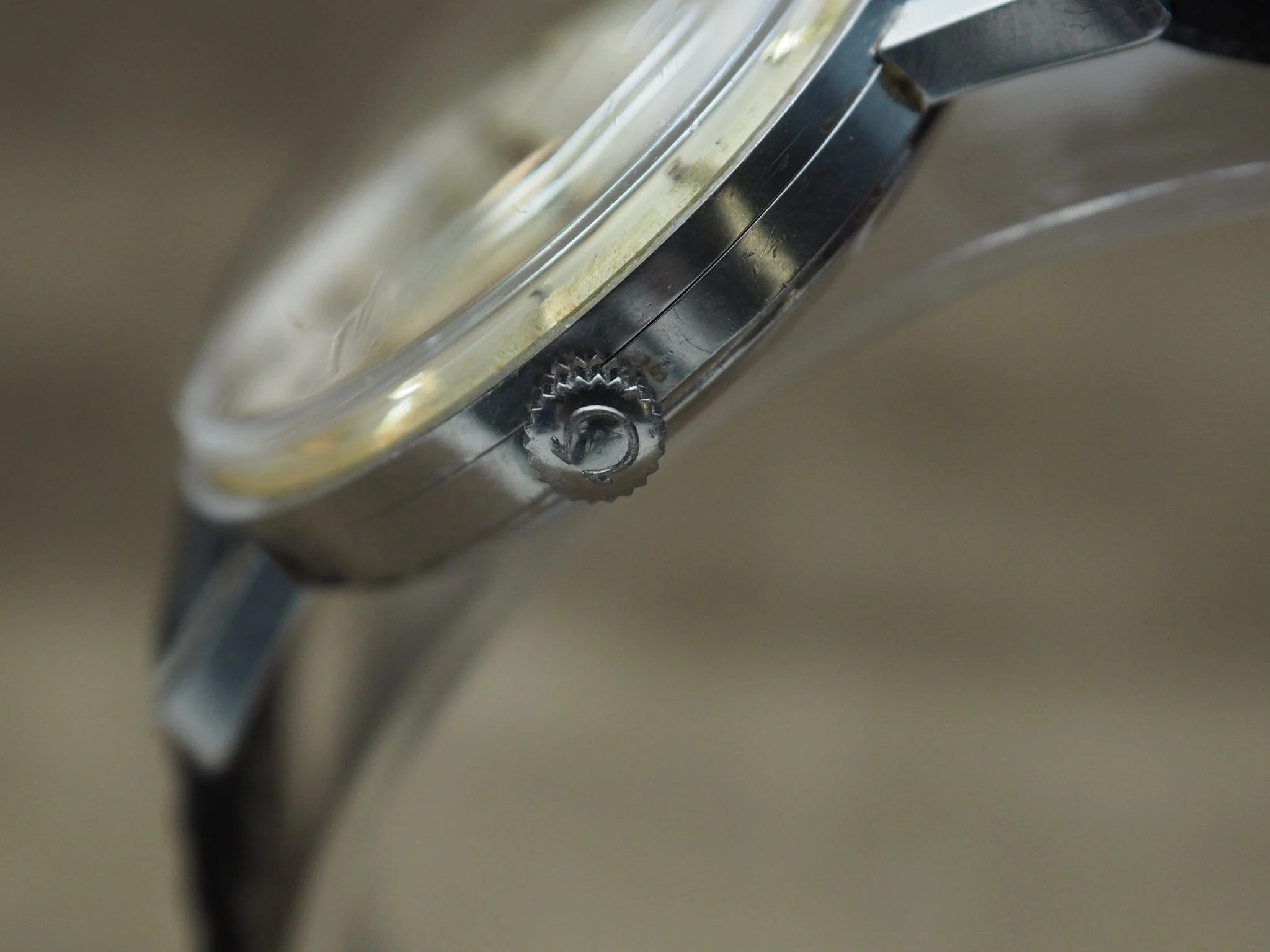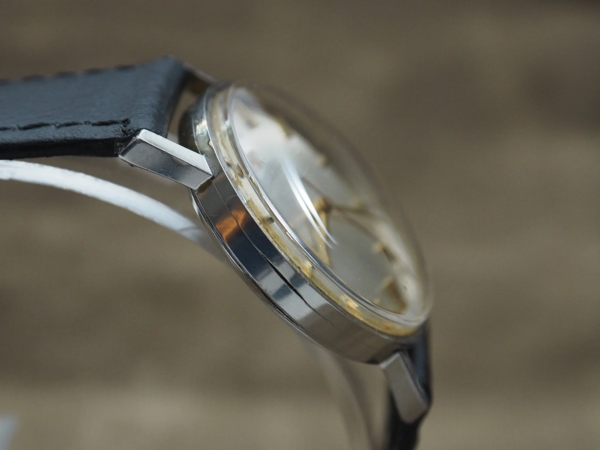 The dial is clean with light patina to the lower section and on the seconds hand, adding a bit of character without detracting from overall presentation. Printing remains crisp and the applied markers are tidy. Original acrylic crystal presents well with only light wear.